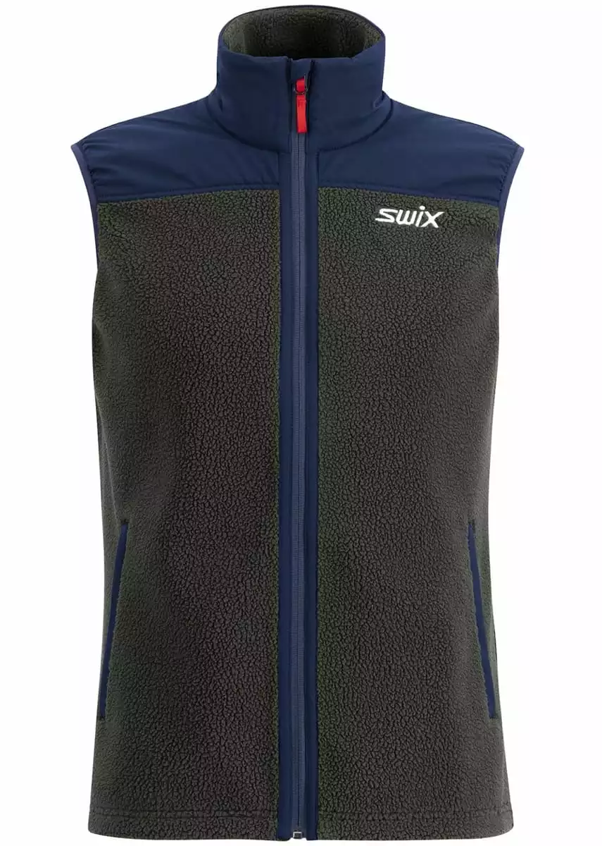 Blizzard Midlayer vest M er en allsidig og funksjonell pilevest fra Swix. Vesten har to varmende håndlommer og er laget i Polartec pelestoff med vindstopperfunksjon på skuldre og krage for å holde deg varm og tørr.