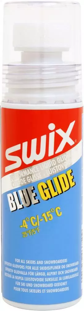 SWIX Blue Glide er enflytende glidvoks med et bredt bruksområde på den kalde siden av null grader. -4°C til -15°C. For alle snøtyper. Et godt og enkelt alternativ for skiløpere og -kjørere som vil ha raske. lettkjørte ski med minst mulig forberedelser. Enkel påføring og rask tørketid! 80 ml.