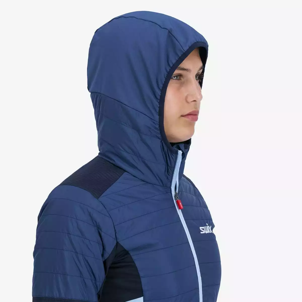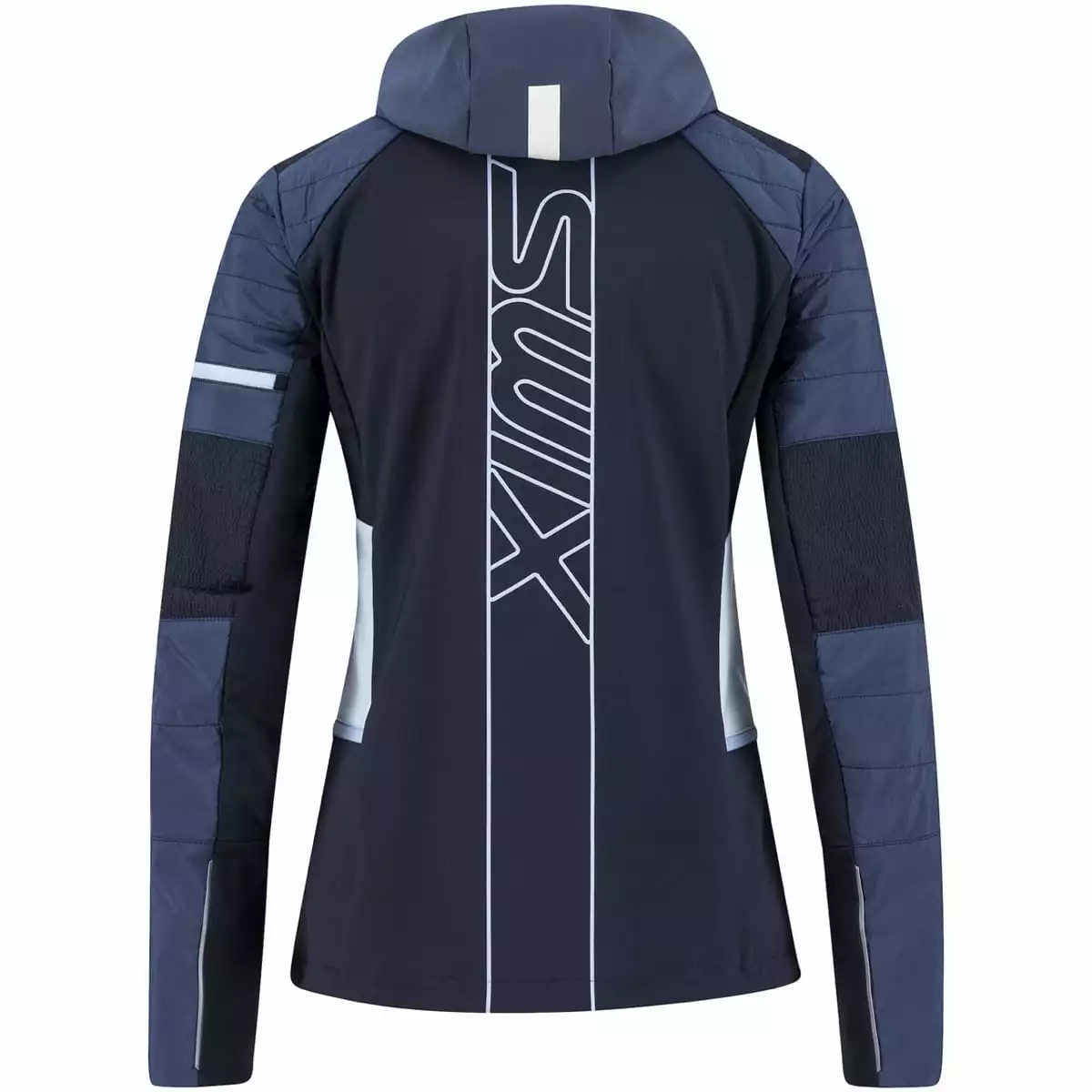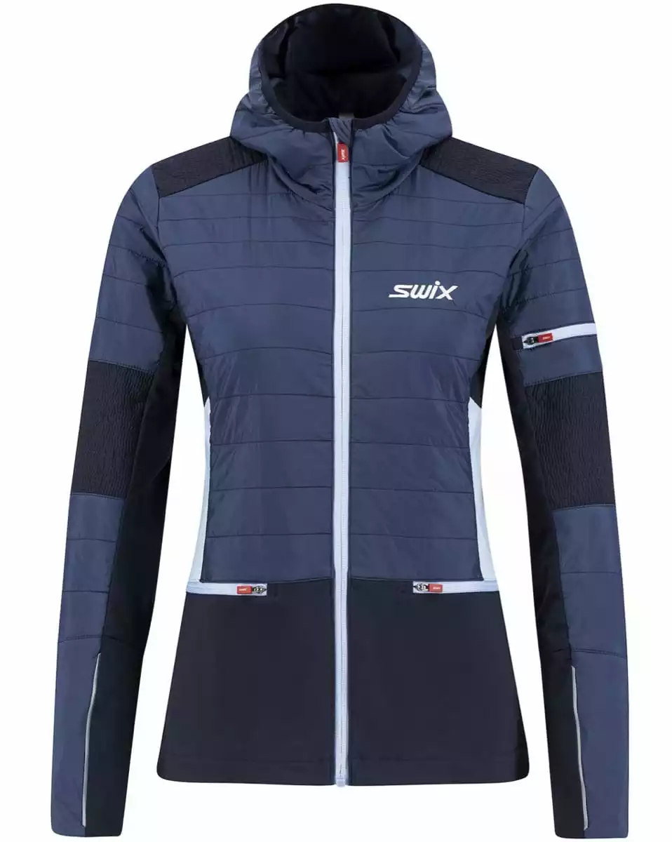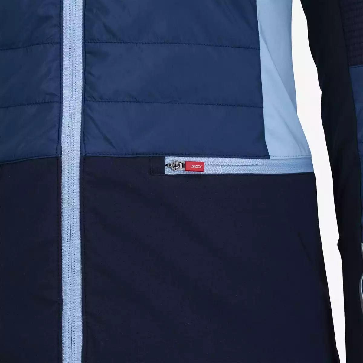 Horizon skijakke fra Swix er konstruert med smarte, tekniske løsninger og designet med et feminint snitt. Jakken er i front og på ermpanelene quiltet med Primaloft® som er svært vindavvisende og isolerende.