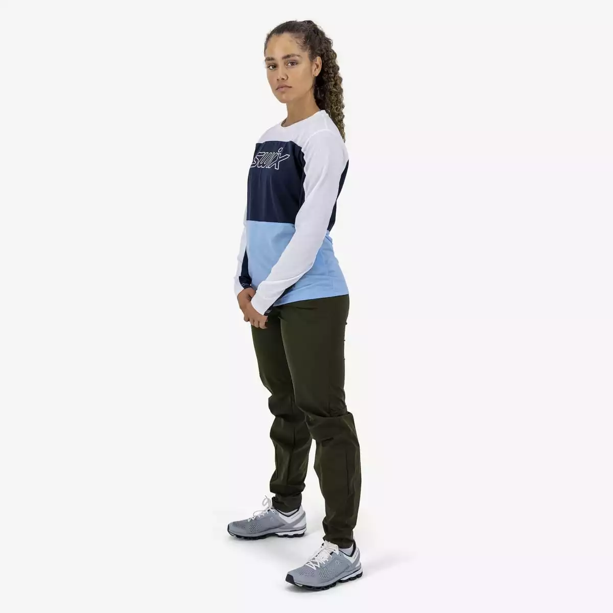 Dette er en trøye du like gjerne bruke til hverdags som til trening. Den hurtigtørkende trøyen fra Swix er utviklet for å se ut som, og føles som, en elegant fritidsgenser, samtidig som den fungerer til høyintensitetstrening. Motion LS er laget av et kompakt garn som har fått en lett børsting. Overflaten er børstet og oppleves komfortabel, samt forhindrer at trøyen klistrer seg til kroppen når man svetter.