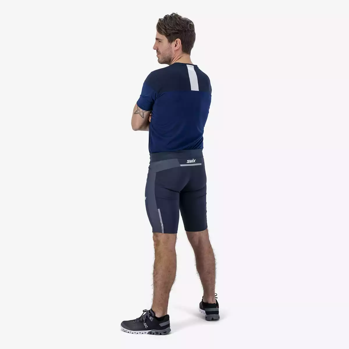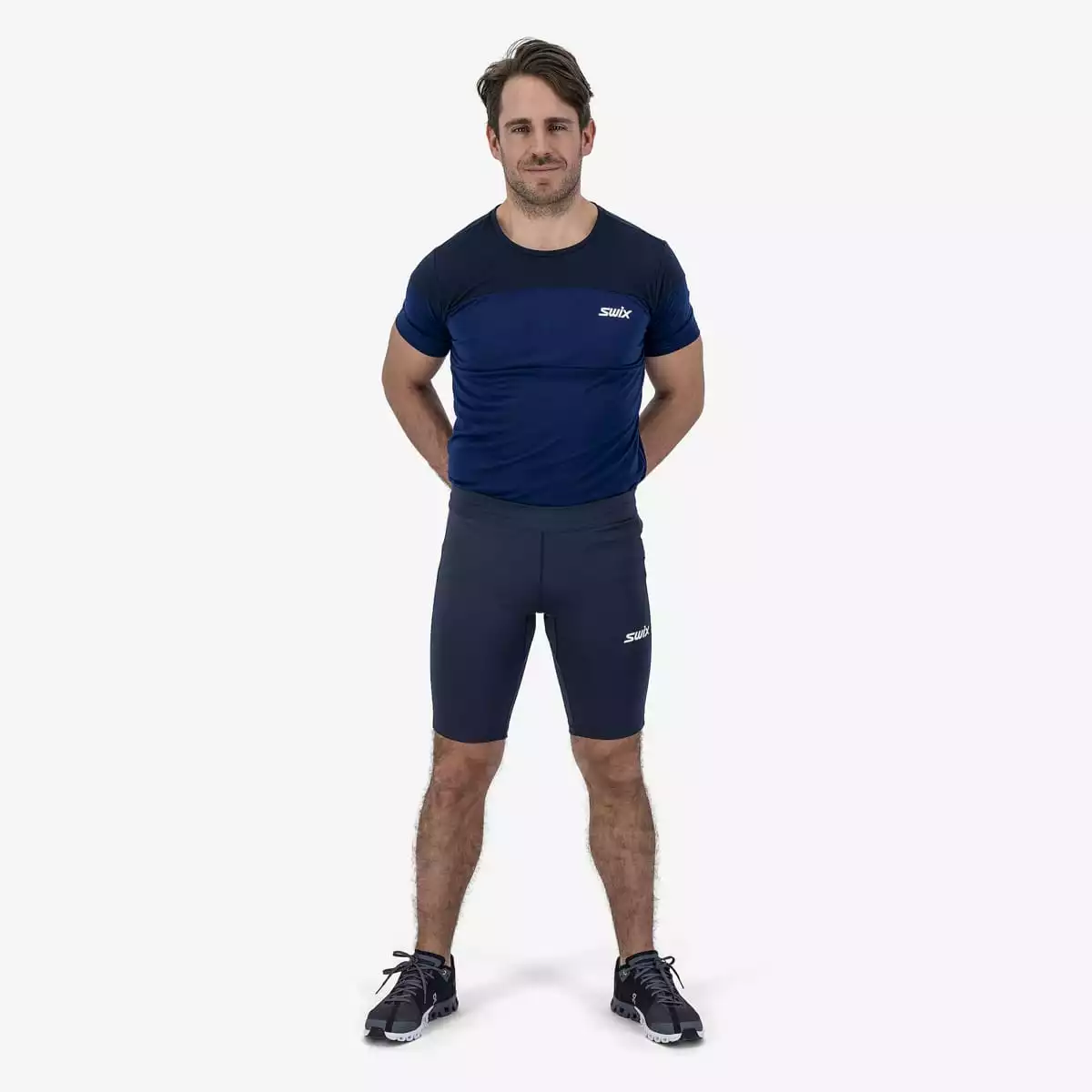 Denne korte tightsen til herre er laget i et elastisk stoff med tykkelse som gjør at shortsen sitter godt på kroppen, og at den har høy slitestyrke. Den brede linningen med strikk sitter svært behagelig i livet. Materialet puster godt, absorberer fuktighet fra huden og dermed forblir shortsen behagelig å ha på utover treningsturen. Swix logo i refleks foran og bak.