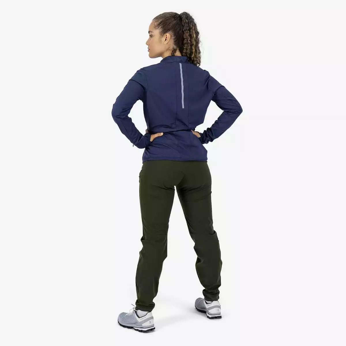 Stoffets innside leder fukt vekk fra huden slik at du vil føle deg tørr, selv når det regner. Utsiden er tettstrikket og sørger for regulering av kroppens temperatur. Trøyen har tommelhull for å varme hendene, samt en åpning med glidelås for pulsklokke.