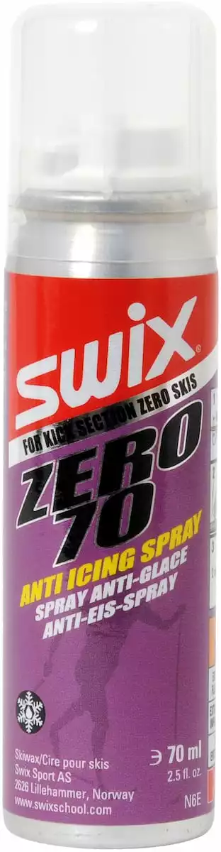 Zero Spray fra Swix brukes på ski med mekanisk feste eller ski man selv har rubbet. Sprayen hindrer ising på ny og fuktig snø rundt 0ºC. La sprayen tørke et par minutter etter pålegging.