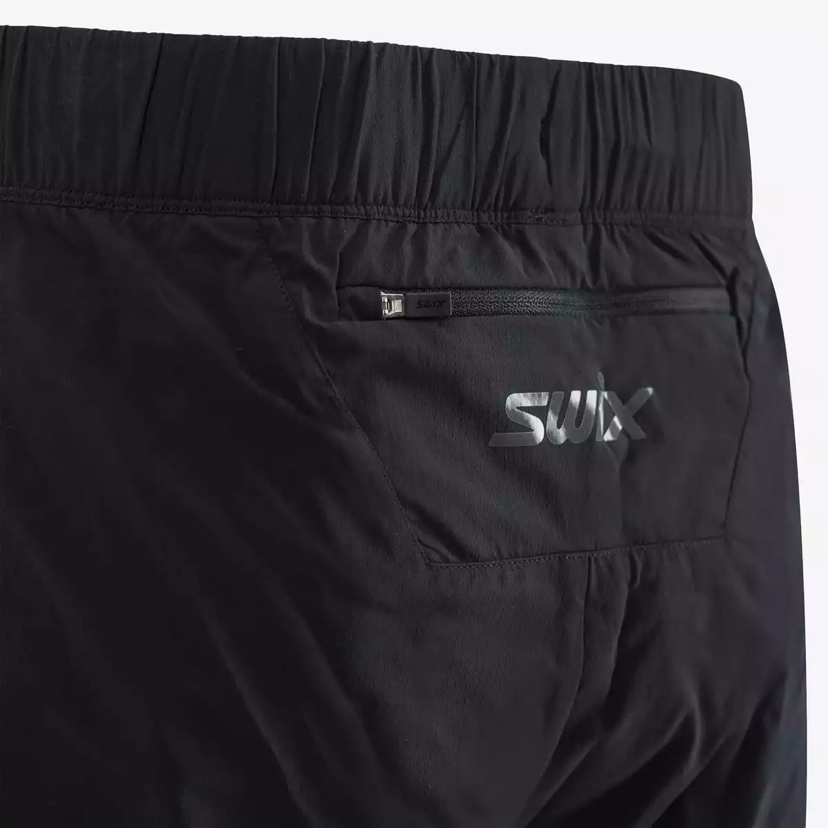Swix Pace Hybrid Shorts M er en lett, elastisk og behagelig løpeshorts til herre. Shortsen har en integrert tights som gir redusert friksjon under løping, og et stretchpanel i skrittet som gir økt komfort og bevegelighet. En baklomme med glidelås gir sikker oppbevaring av telefonen. Shortsen har splitt nederst på kanten for ekstra fleksibilitet, og refleksdetaljer gjør deg synlig i mørket.