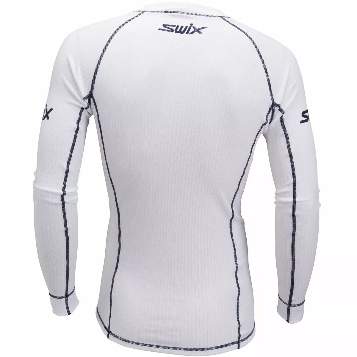 Racex Bodyw LS fra Swix er et lett og hurtigtørkende undertøysplagg, passer utmerket for høyintensive økter. Trøyen har en super elastisk konstruksjon og føles meget lett og luftig mot huden. Den åpne strukturen holder på den varme luften tett på kroppen, samtidig som det har meget god pusteevne, hurtigtørkende egeskaper og god fukttransport, noe som gjør dette plagget meget komfortabelt og temperaturregulerende under høy aktivitet.