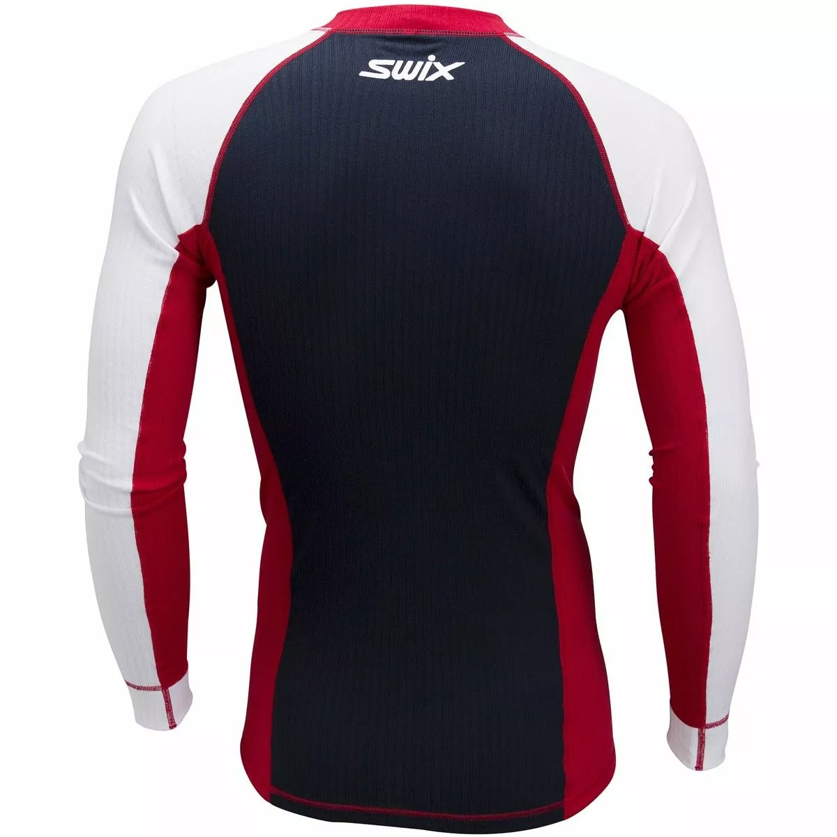 Racex Bodyw LS fra Swix er et lett og hurtigtørkende undertøysplagg, passer utmerket for høyintensive økter. Trøyen har en super elastisk konstruksjon og føles meget lett og luftig mot huden. Den åpne strukturen holder på den varme luften tett på kroppen, samtidig som det har meget god pusteevne, hurtigtørkende egeskaper og god fukttransport, noe som gjør dette plagget meget komfortabelt og temperaturregulerende under høy aktivitet.