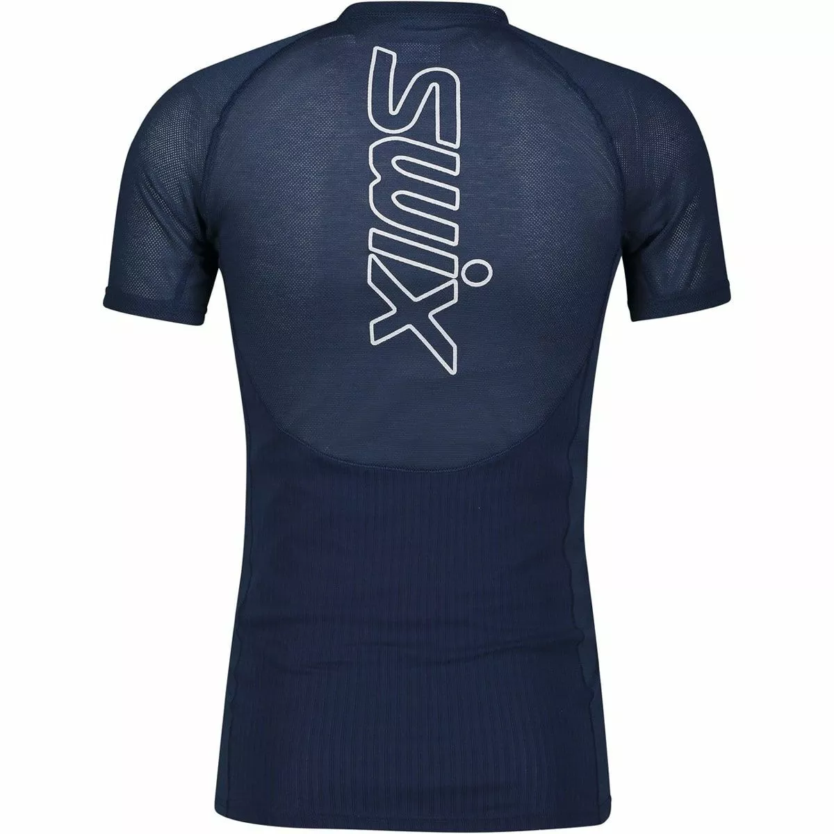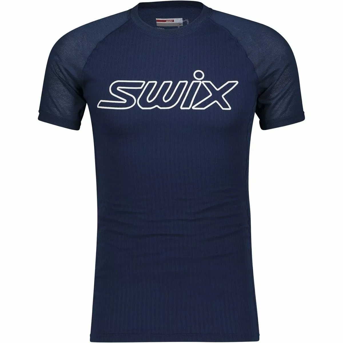 Dette er en av de letteste og tynneste varianten av Swix RaceX undertøy, der skuldre, ermer, sidepanler og store deler av den øvre ryggen er laget med et enda åpnere og lettere meshaktig stoff enn orginalen. T-skjorten kjennes behagelig mot kroppen og gir deg full bevegelsesfrihet med stretch i alle retninger, og sømmer som ikke gnager. Materialet er behandlet for anti-lukt og anti-nupping. Denne undertøysserien har vunnet utallige tester gjennom årene og foretrekkes på grunn av det lette og særdeles stoffet. Den åpne strukturen holder et tynt lag med isolerende luft mot huden, og tilbyr samtidig formidabel puste- og ventilasjonsegenskaper; minimal fare for overoppheting. Det er et hurtigtørkende materiale, og strukturen er laget slik at den absorberer fukt fra huden. Dette er en av flere grunner til at undertøyet oppleves så komfortabelt og temperaturregulerende under intens aktivitet.
