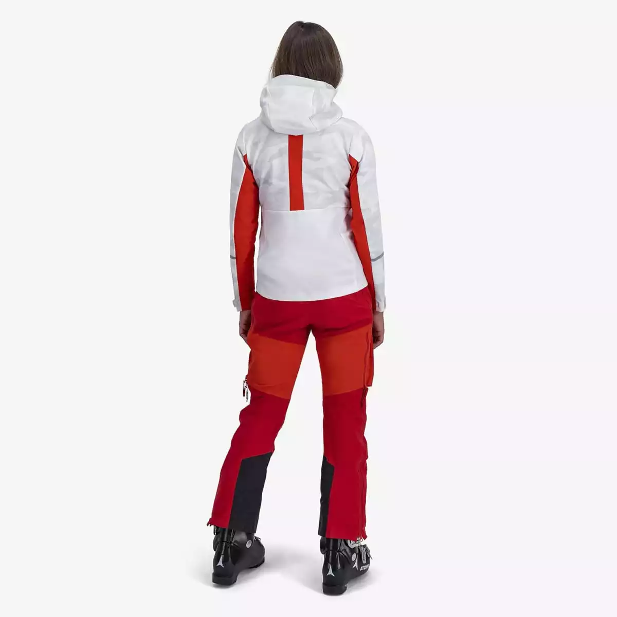Materialet er svært pustende, men det vil fortsatt holde den kalde vinden ute. Designlinjene er laget for bruk med en ryggsekk, hetten er konstruert for å passe til alpinhjelmen din og ermeåpningen har bånd med justerbar borrelås. Det er refleksdetaljer på underermene for å gjøre deg synlig i mørket. Jakken har to brystlommer som også kan brukes for ekstra ventilasjon.